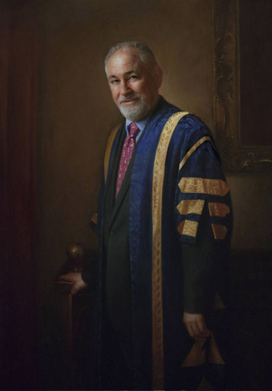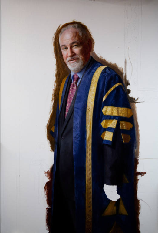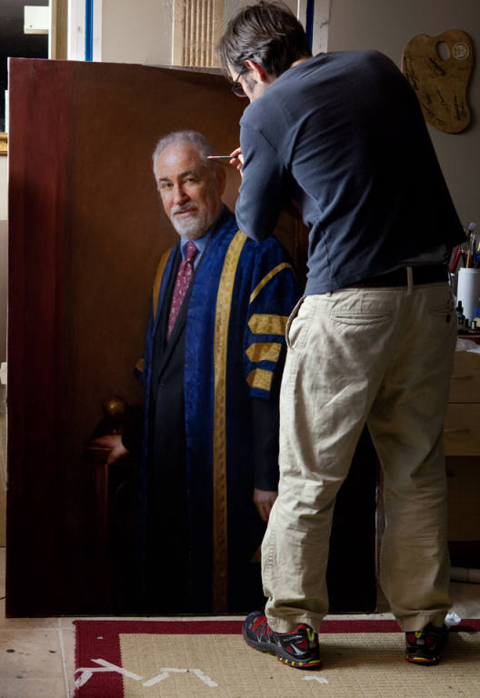 Once the purpose and place for the painting was established, a sitting was arranged for Andy and me. We determined that the painting would be set within the historic Provost's residence, an old stone edifice with high windows and Rembrandtesque cool north light. A painter's dream!